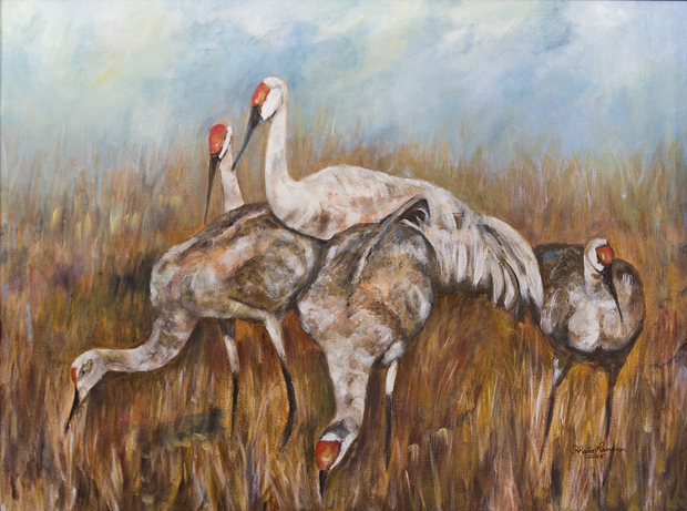 Rhoda Lammer " Sandhill Cranes " Oil Painting 18" x 23", Framed $850