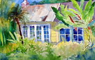 Sally's watercolors, done mostly in the traditional style, depict scenes from her native Florida and her travels from Florida to Nova Scotia. However, she doesn't always stick to the traditional, experimenting with inks, acrylics, watercolor lifts and her imagination.