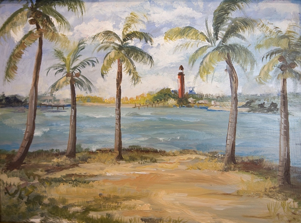 Romney Shelton Collins " Jupiter Lighthouse " Oil Painting 8" x 11.5" $275