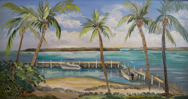Romney Shelton Collins " Key Largo " Oil Painting 12" x 23" $525